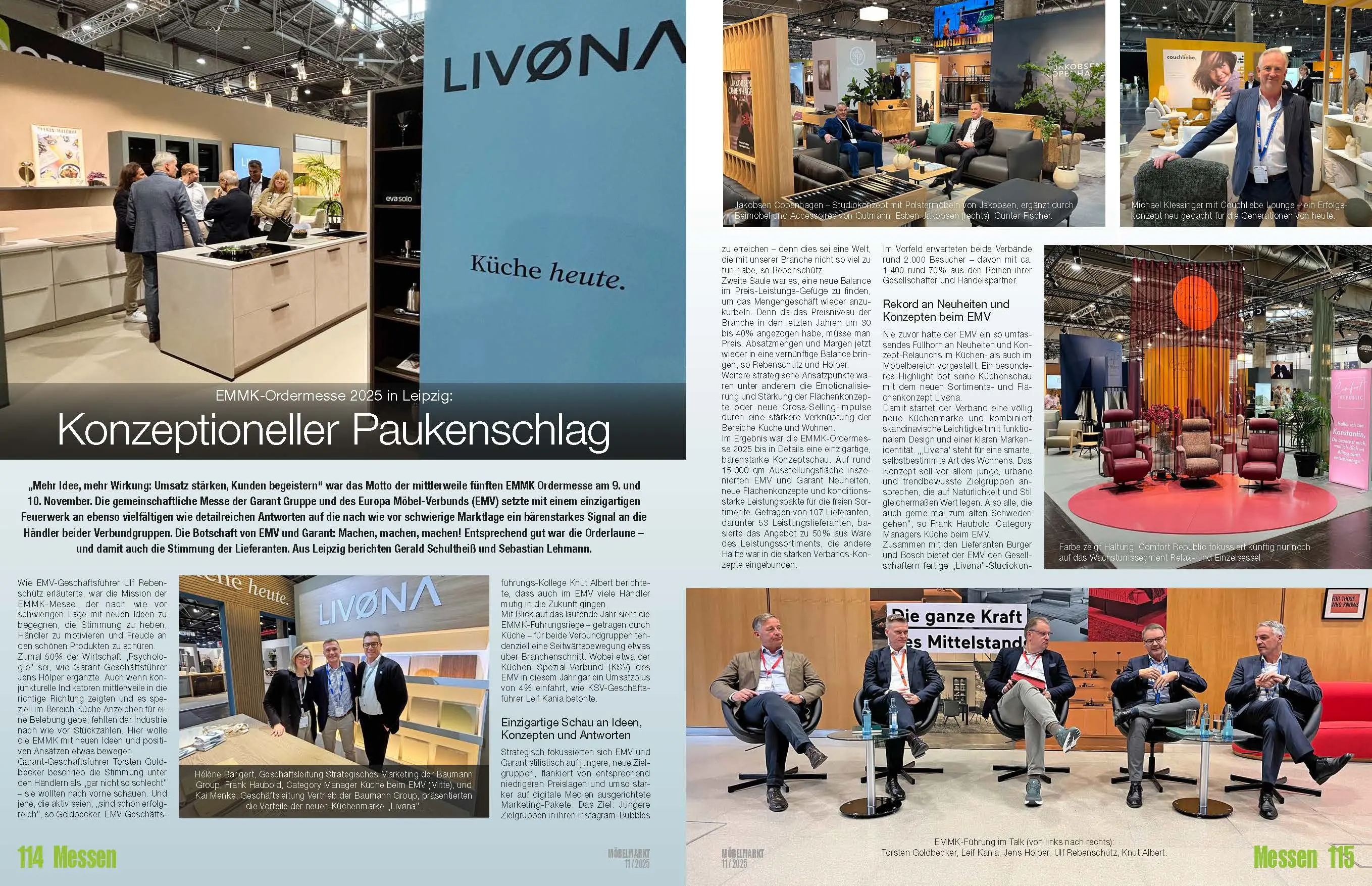 Nachdem die Pandemie einer gemeinsamen EMMKPräsenzmesse 2020 einen Strich durch die Premiere gemacht hatte, kann die Messe nun stattffinden. Am 7. und 8. November laden der Europa Möbel-Verbund inklusive KSV und die Garant Gruppe nach Leipzig ein, um zu demon– strieren, wie weit die Zusammenarbeit gediehen ist.